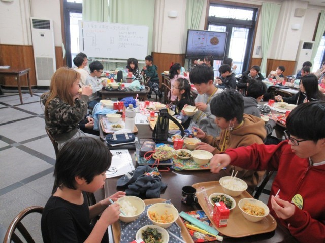 はじめは、1年生も6年生も少し緊張した表情で食べていました。