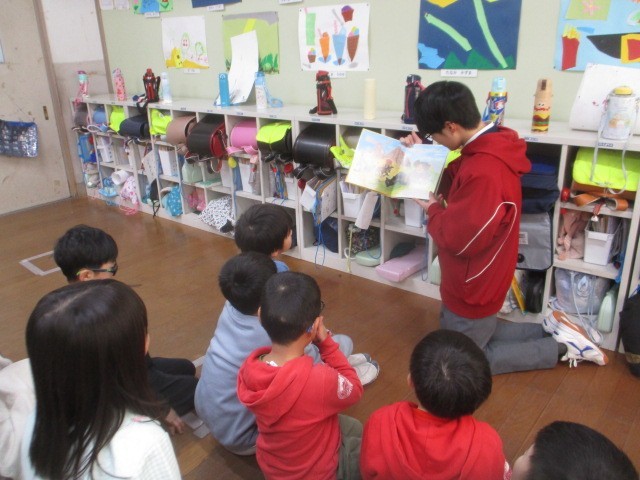 1年生の教室にもやってきて、読み聞かせをしてくれました。