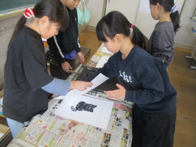 でこぼこしているので、インクが付けにくかったですね。和紙をのせてから、しっかりこするのも難しかったです。