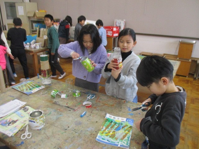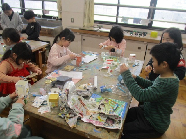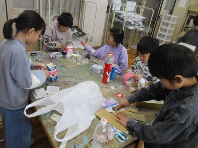 今日は、空き容器を組み合わせたり、貼り付けたりして、土台作成をしました。