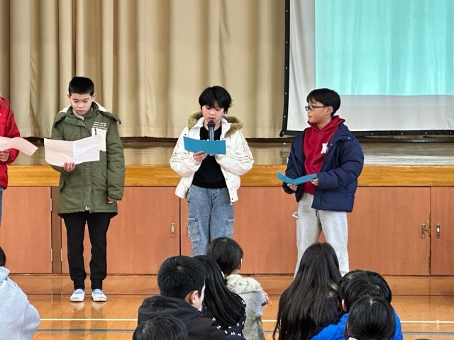 30日(金)の人権に関わる授業参観では、『ヒキガエルとロバ』というお話から「命」を大切にするということについて考えました。子どもたちは、お話の内容から様々に考えを広げ、「命」を大切にするということについての考えをとても深めることができていました。とても素晴らしかったです。そして、今日は、2月のにこにこ学習がありました。「命」について深めた考えを代表児童2名が全校児童の前で堂々と発表することができていました。大切な「命」。どんな「命」も大切な「命」。自分の「命」も周りの人や生き物の「命」も大切にしていきたいですね。