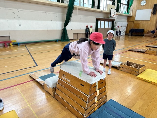 『ちょっとした工夫をすることで…』今日の体育で、子どもたちはそう感じることができたのではないでしょうか。4年生の子どもたちは、体育の学習でとび箱運動の学習に取り組んでいます。全員がとても意欲的にとび箱運動の学習に意欲的に取り組むことができていますが、それでもできる跳び方、できない跳び方がそれぞれにあり、ねらい②の学習では、少し頑張ればできそうな跳び方にチャレンジしています。技カードを見て練習の場を工夫したり、自分が跳んでいるところを動画に撮影して確かめてみたりと様々に工夫を凝らしながら、練習に取り組んでいます。その結果、今日もたくさんの子どもたちが、練習している跳び方でとび箱を跳ぶことができるようになりました。ちょっとした工夫なのですが、そのちょっとした工夫で『これだけ上手に跳ぶことができるようになる』ということを実感できたからこそ、これからも様々な場面で「工夫する」ということを大切にしていってほしいです。