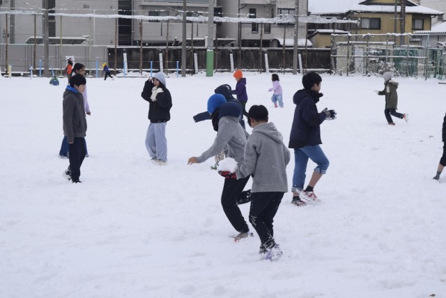 ちょっと通ろうとするとどこからともなく雪玉が飛んできました。こういう時に外に出ていくとすぐに狙われます。笑顔で雪玉を投げ返していました。中間休みまでは遊ぶことができましたが、それ以降はとけてドロドロになってしまったのが残念でしたが、ドロドロになった雪や、作った雪のかたまりを寂しげに眺める子どもたちが何とも言えませんでした。