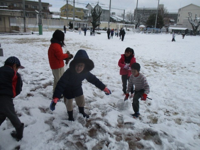 寒さを気にする様子もなく、朝休みと中間休みには、元気に雪遊びをする子どもたちの声が響きました。