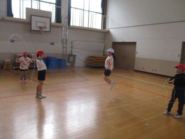 初めは「寒い…」と言っていた子どもたちも「もう寒くないです!」と言うほど、たくさん跳んでいました。
