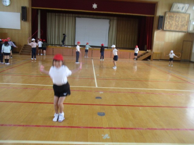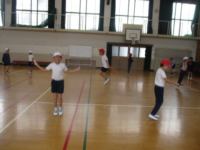 運動場が使えなかったので、1時間いっぱい、なわとびの練習をしました。