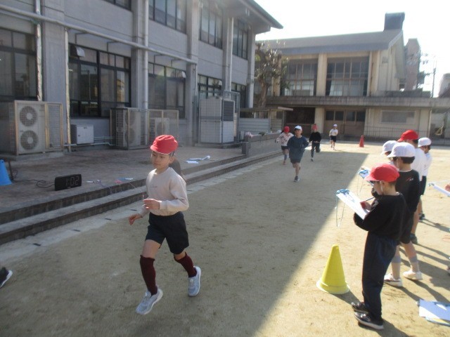 5分間、同じペースで走り続けることを意識して、持久走をしました。