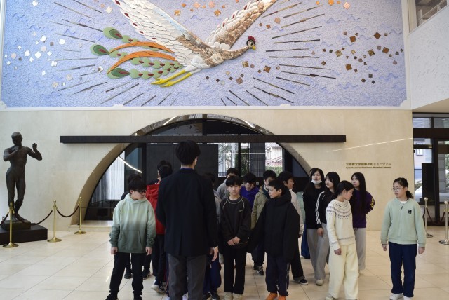 そんな手塚治虫さんの「火の鳥」がラウンジにいるのは、ミュージアムの理念を象徴するものとして掲げられているそうです。というのも、過去に大きな戦争を経験してきた私たち人類ですが、今も世界では地域紛争が続き、多くの人々が命の危険にさらされています。悲しい事実です。さらに、飢餓や貧困、人権の侵害、環境破壊など、国際社会が協力して取り組むべき問題も次々と生じています。そのような課題を解決し、すべての人が可能性を発揮できる平和な社会をつくるためには、紛争の原因を取り除く努力が求められています。そこで、平和創造の面で果たすべき社会的責任を大切にし、平和をつくり出す人を育てることを目的として平和ミュージアムが設立されました。