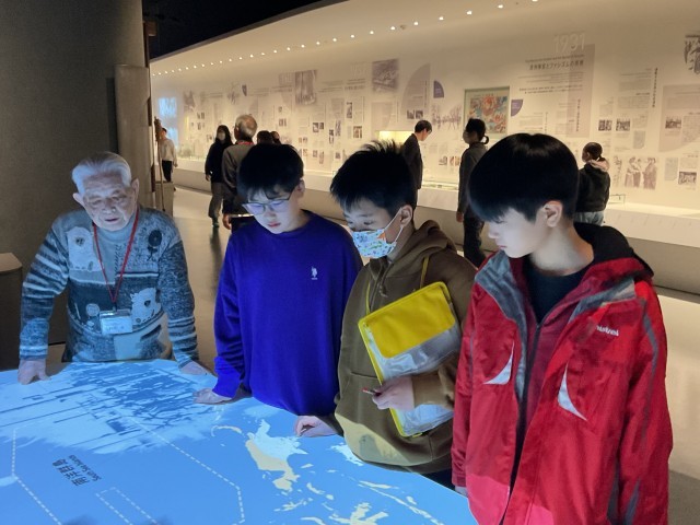 そんな平和ミュージアムに行かせていただけるのはとてもありがたいことです。石碑めぐりと同じで、実際に資料や展示物を見ていくことで感じることもあります。ボランティアの方もいてくださり、子どもたちも疑問に思ったことを質問したり、詳しいお話を聞かせていただいたりして、それぞれの興味について学んでいました。ゆっくり時間があったので、様々な展示物をゆっくり見ることができたようです。「今」という時間、私たちの「毎日」は当たり前ではありません。当たり前ではない毎日に感謝しながら、平和な社会を創造していく上で、考えることを放棄せず、私たちが考えられることを考え続け、行動に移すことができる人でありたいと感じました。