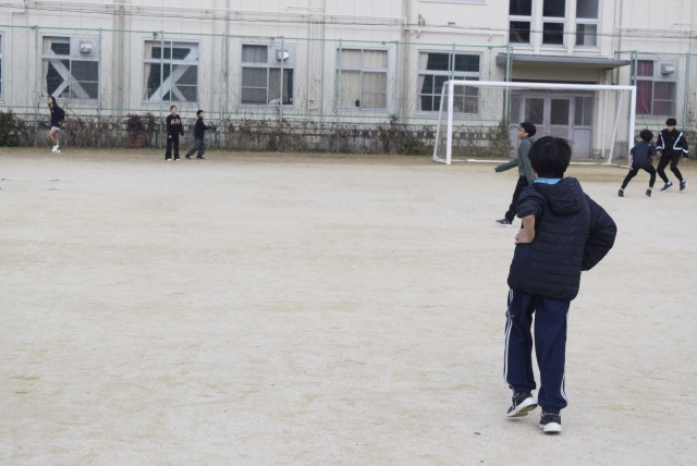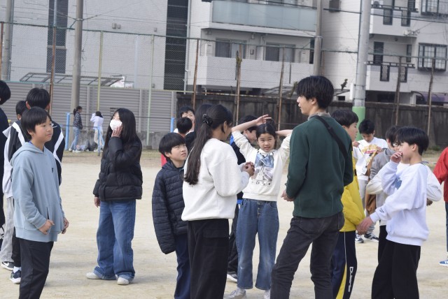 給食時間からロング昼休みの遊び内容について語り合う子どもたち。これだけ大きくなってきても、やっぱりみんなで遊ぶのは楽しいのですね。何をしたいか相談して鬼を決めるなど、盛り上がっていました。外に出た瞬間はやはり寒かったのですが、ロング昼休みが終わる頃にはみんな口々に暑いといいます。気持ち良いくらい全力ですね。今回は増え鬼をしていたので、様々な場所で熱い戦いがくり広げられていました。青空に子どもの笑顔がよく映えていました。