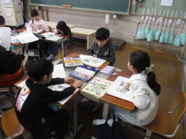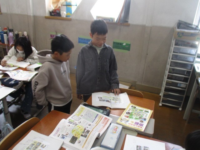 身近なところにある、事故や事件をふせぐ仕組みや取組について、資料を見ながら調べました。