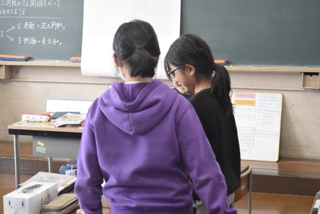 展開図などはイメージが大事です。イメージでぱっと思いつく子どももいれば、こういう問題がとても苦手でイメージしにくいという子もいます。個人的に大事だと思っているのは、しっかりと底面を決めることです。4年生で習っている、立方体や直方体の時は特にそうでした。地面に接している面をちゃんと判断した上で、そのお隣に来る面がどれなのか、どんな形なのかと順番に考えていくことが欠かせないと思います。1つの面が決まると、イメージのスタート地点がはっきりするので考えやすいです。ただし、あくまでこれは私の考えなので、色んな考えを友だちから学んでいく上で、自分にしっくりくるものを選ぶことが大事です。
