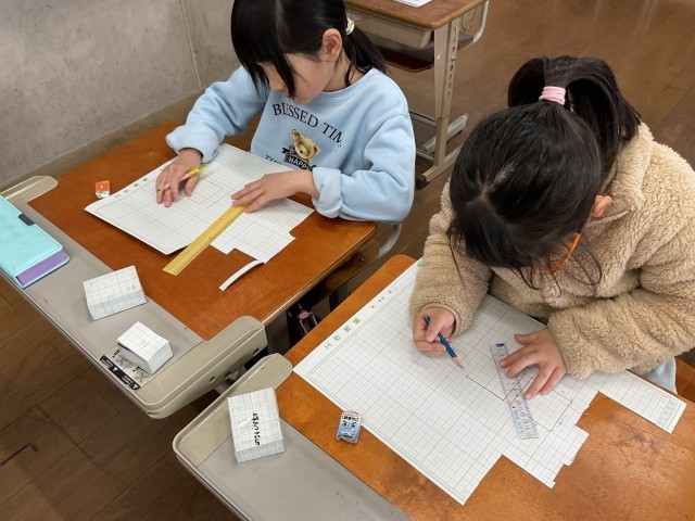 面はいくつ作らなければならないのか、辺の長さはそれぞれ何㎝なのかを考えながら、はこを作りました。