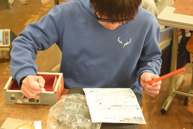 子どもたちが版画を終え、その後すぐにとりかかって作ってきたオルゴールボックスです。これを作り出すと、卒業という感じがしてきます。