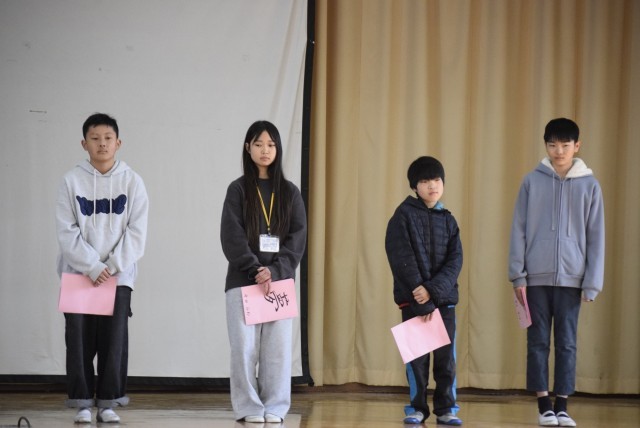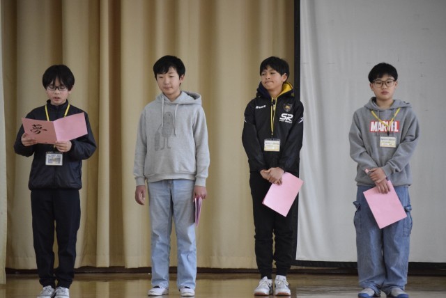 そして、まとめの会です。児童会代表全員が前に立ってふり返りを話しました。前期・後期に関わらず、代表の子どもたちはここまで全力で頑張ってきてくれました。立候補し、選ばれてからは本当にずっと何か活動をしていたように思います。行事の司会をはじめ、たくさんの挑戦がありました。子どもたち自身の言葉にも、「大変だったけどやりがいがあった」「達成感を得ることができた」「やってみないとわからないことがある」「みんなにも挑戦してほしい」といった、経験をもとに語る言葉がたくさんありました。それだけでもう…でした。