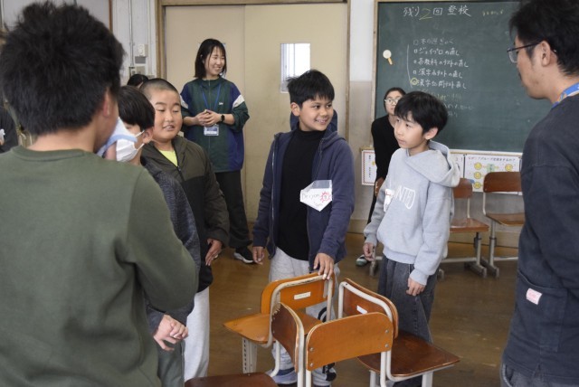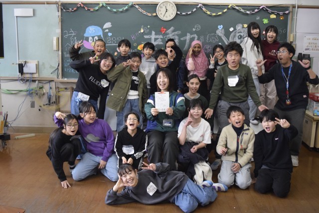 今年度、授業でお世話になった先生にもお越しいただき、みんなで思いっきり遊びました。イスとりゲームで大盛り上がり。可愛いですね。しかも、自分がアウトになっても盛り上がっています。気持ちが良い明るさです。私も善戦したのですが、勝ち残ることはできませんでした。