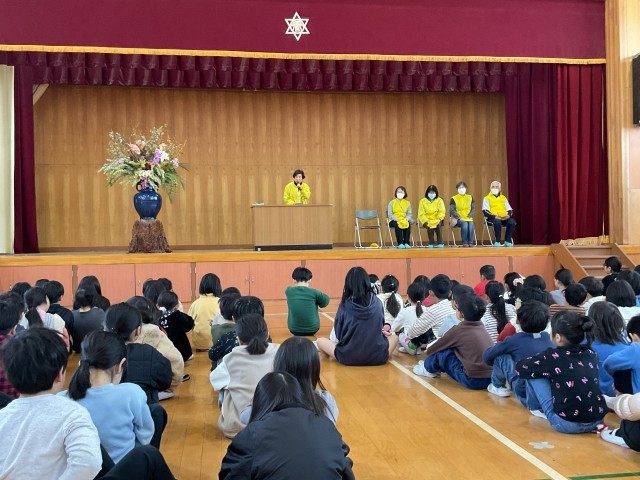 修了式に先立って、「見守り感謝状贈呈式」を行い、いつも地域で登校の安全を見守っていただいている方々に感謝の気持ちを伝えることができました。その後の修了式では、1年間を振り返り、目指す姿に近づけたかどうか、来年度どんなことを頑張っていきたいか、ということを問いかけました。また来年度は、さらに楽しい養正小学校にしていくために、たくさんのアイデアをくださいねとお願いしました。自分たちで、よりよい学校を創っていくことができたらいいですね。