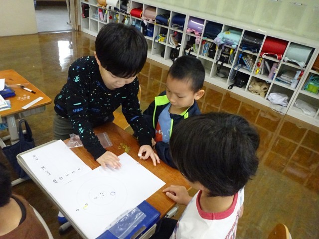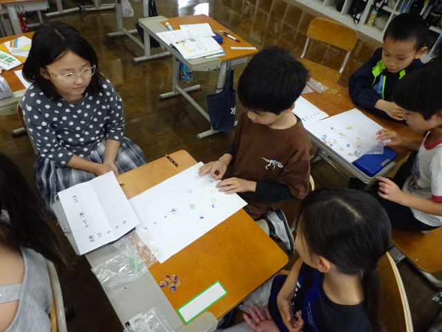 今日は、おはじきを使ってゲームをしました。