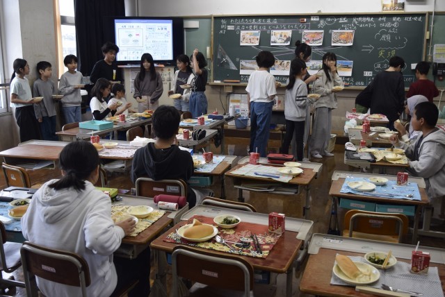 今日から給食が始まりました。初日の献立は、みんな大好き「スパゲティ」!!「スパゲティ」のおかわりに長蛇の列ができていました。おかわりしたい友達がたくさんいる中、みんなのことを考えて増やす量を調節する子どもたち。素敵です。そんな素敵な光景に、お腹も心も満たされました。(もちろん、「ほうれん草のソテー」も完食!!)みんな、笑顔いっぱいでおいしそうに食べていました。