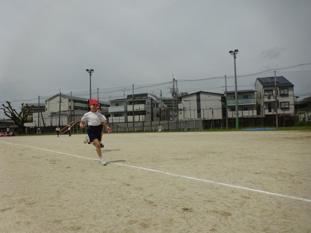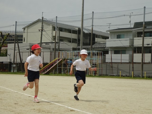 4年生と一緒に、50m走のタイム計測を行いました。