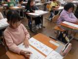 書写の学習では、字の形に気を付けながら「元気な子」と書きました。子どもたちは「真...