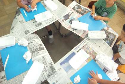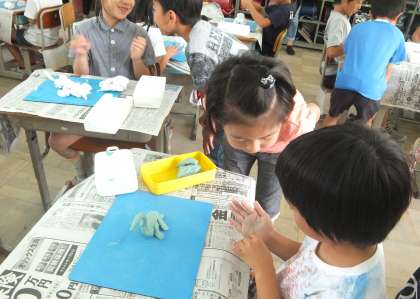 図工の時間に,嬉しかったことや楽しかったことを思い出し,それを粘土であらわす活動をしました。