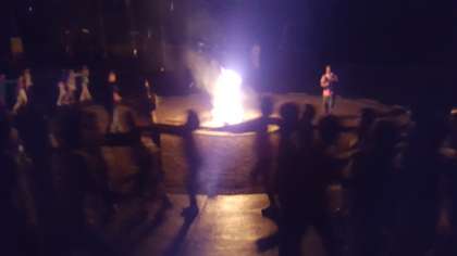ファイヤーを囲んで歌ったり,踊ったり…。