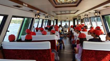 みさきの家のなかよし港からマリンランドへと船で向かっています。