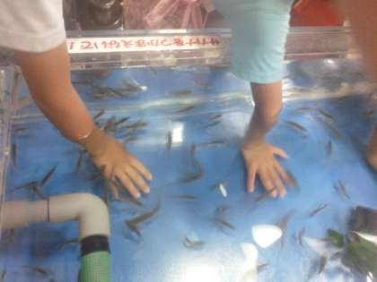 直接生き物に触れられるコーナーがあり、普段ではできない体験を楽しんでいます。