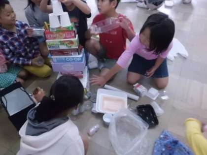 生活用品の廃材を使ってできる遊びを考えたり,遊びに使う物を作ったりする学習です。