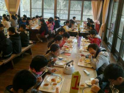 山の家の職員の方にもハキハキさわやかに挨拶して,今朝もしっかり食べています。
