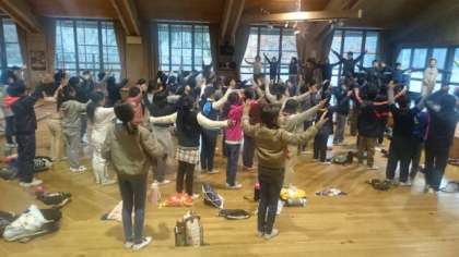 体操ですっきり身体を目覚めさせて,1日の活動スタートです。