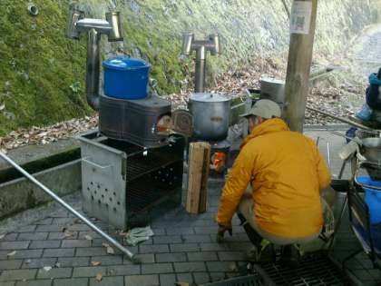 山の家の職員の方に,炊事場の約束を聞いて,いよいよ野外炊事が始まりました。