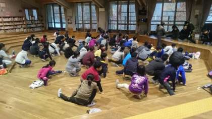 身体を目覚めさせるために体操をしました。昨夜はみんなぐっすり寝たので,今日も元気いっぱいです。