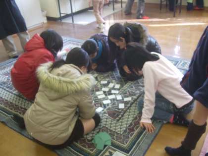 1/22のおもしろ大百科は「もちつき大会」です。昔あそび(こままわし・羽つき・けん玉・百人一首・いろはかるた)をして,もちつき体験をしました。つきたての餅をいろいろな食べ方(いそべ・きなこ・ぜんざい・おぞうに)でいただきました。