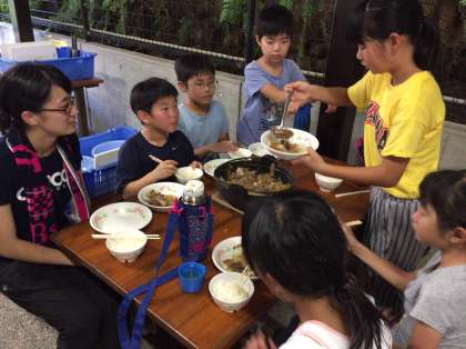 おいしく食べた後は,後片付けもしっかりと…。
