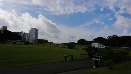 朝の食事時間には激しい通り雨がありましたが,今はこんなに晴れて風が爽やかです。