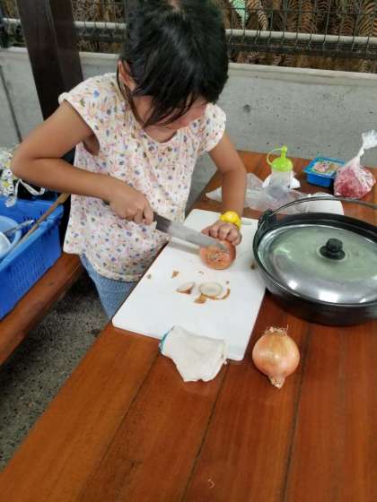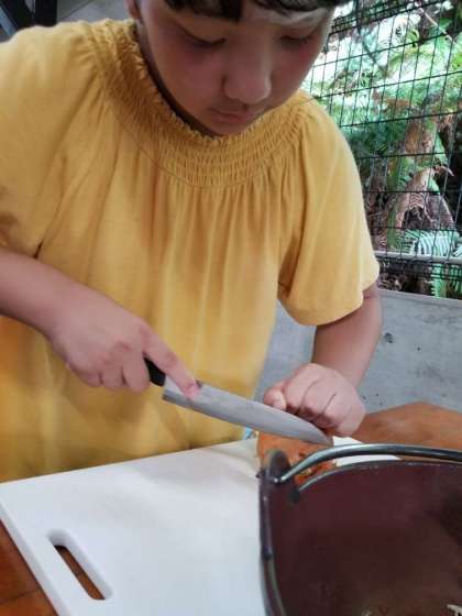 おうちでお手伝いも頑張っていた子ども達。包丁の使い方も猫の手でバッチリじょうずでしたよ。