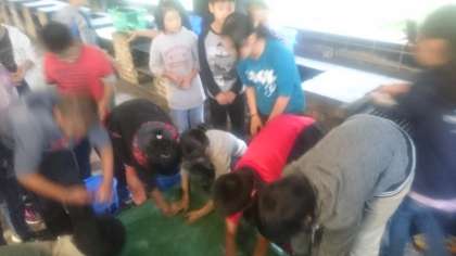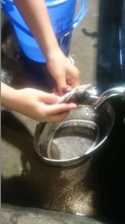 捕まえた後は,水で洗ってぬめりを取り,さばいていきます。