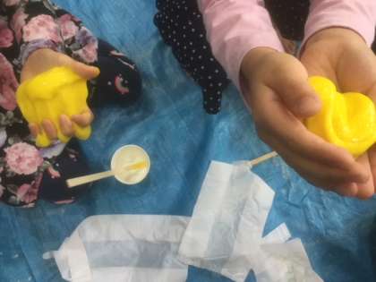10月のおもしろ大百科は,恒例の和太鼓体験やスライムづくりをしました。