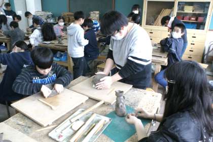 ゲストティーチャーを迎えて,6年生が陶芸体験を行いました。初めに留意点について話を聞いた後,自分の作りたいものを,思いを込めて作りました。「楽しくできた。」「出来上がりが楽しみです。」…などの声が聞こえてきました。ゲストティーチャーの先生のお力を借り,乾燥・焼成をしていただいた後,3月には子どもの手に作品が届きます。