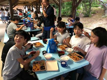みんな笑顔全開で,もりもり夕食をいただいています。