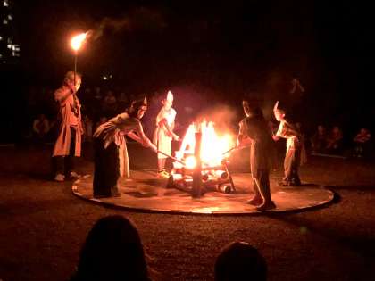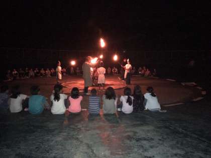 厳粛な雰囲気からスタートです。火の神様とともに,ファイヤーに点火します。