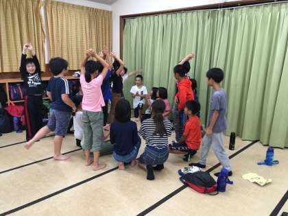 残念ながら,大広間に移動してお楽しみレクリエーションに切り替えました。でも,何事も前向きに考えられる子どもたち!