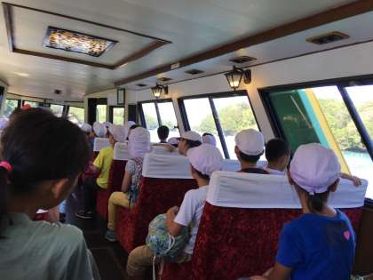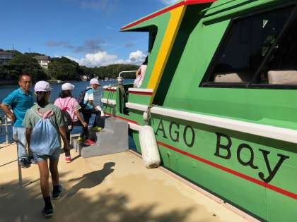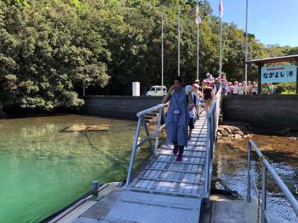 みさきの家にある「なかよし港」から船に乗って,志摩マリンランドへ向かいます。船に揺られて,しばし船旅を楽しみます。