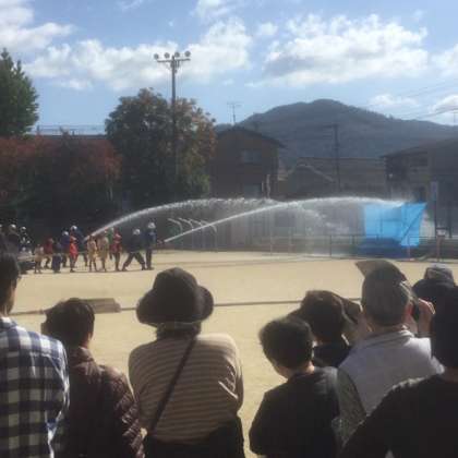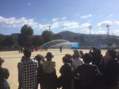 次は,放水訓練です。小さな子どもから年配の方まで,体験希望の方が集まってこられました。