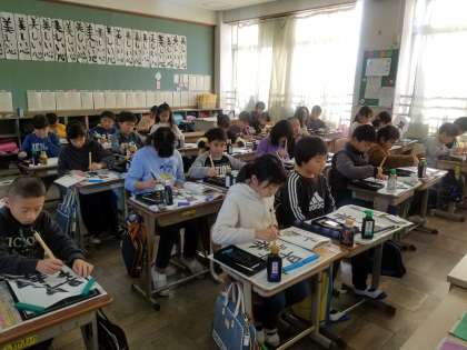 自由参観日には,お子達の頑張りとともに書き初めも是非ご覧ください。