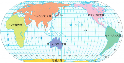 さて,世界地図には「たての線」と「よこの線」があります。「たての線」は「○線」,「よこの線」は「△線」と言います。さて,○と△に入るのは何でしょう。答えは社会の教科書に書いてあるので,読んでみてください。