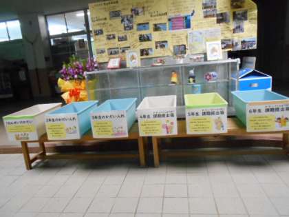 玄関を入ってすぐのところに,学校ポスト(各学年の課題提出箱)を置きました。