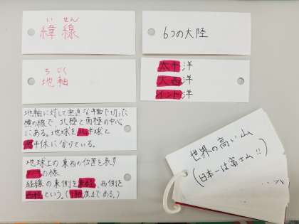 先生は単語帳を使って教科書に出てくる太文字の言葉や大切だと思った言葉をまとめてみました。